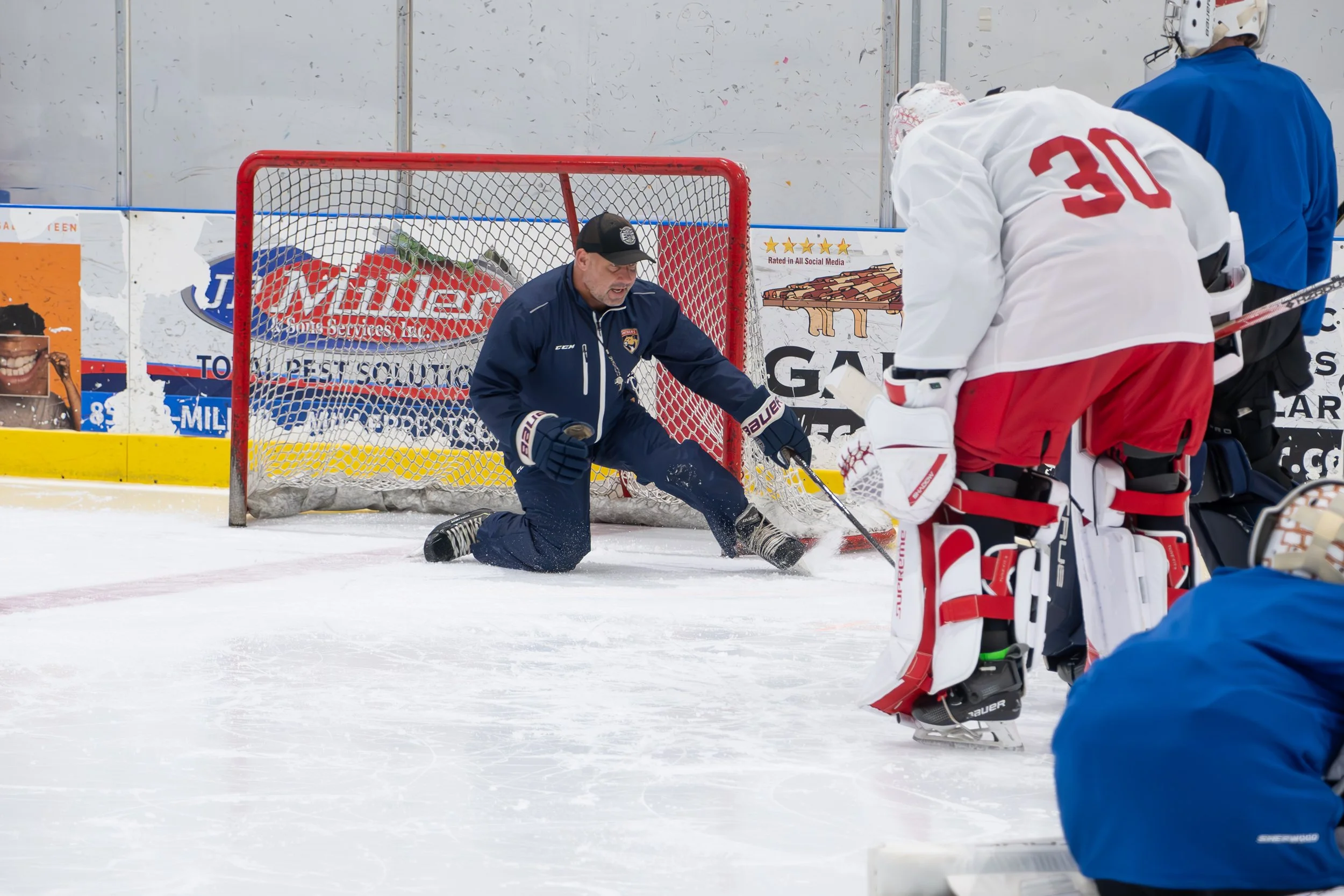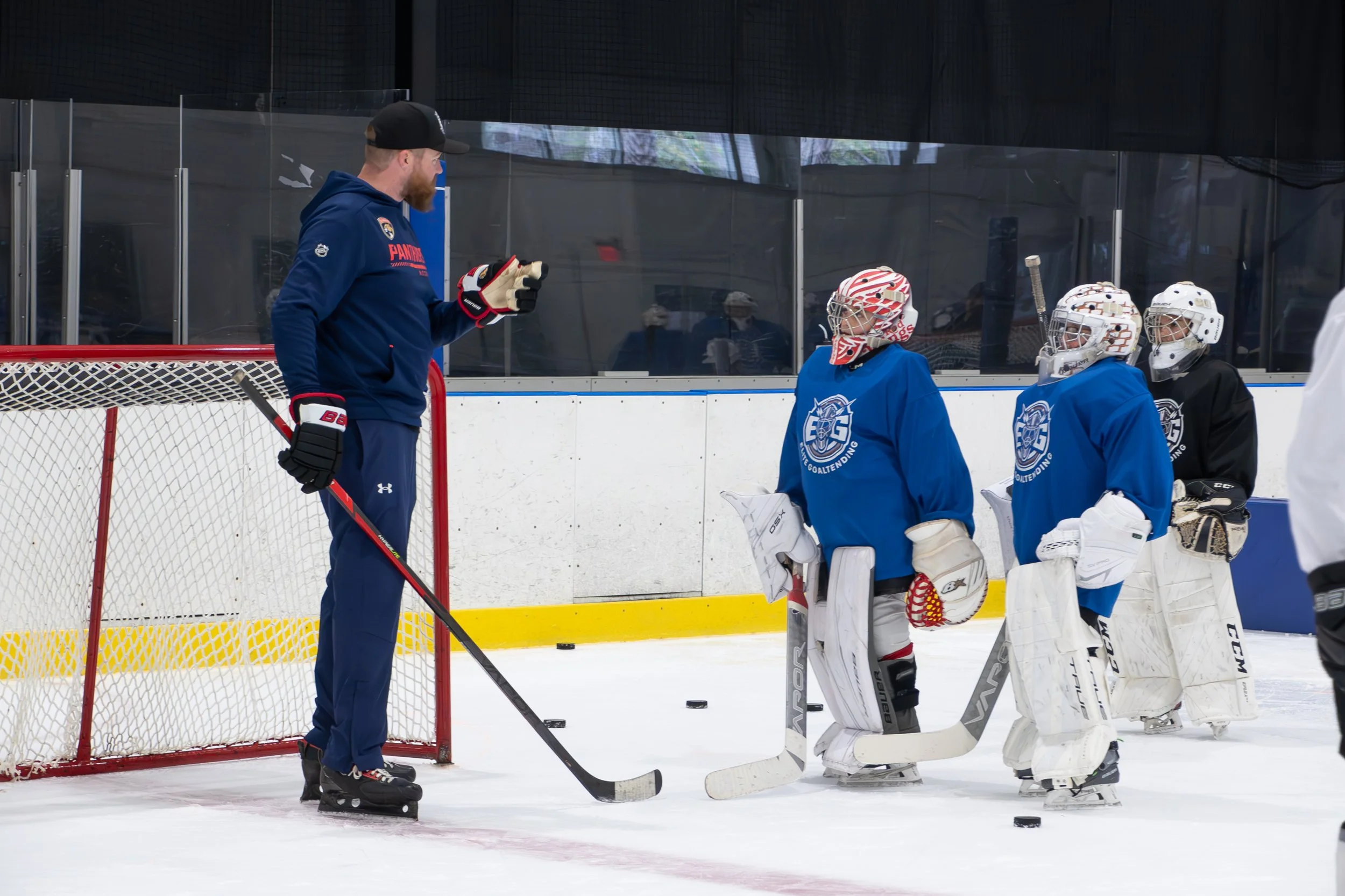 Small group (6 goalies max) goalie training with Coach Tomas Vokoun. Emphasis on skating & movement, as well as game situation shooting drills.